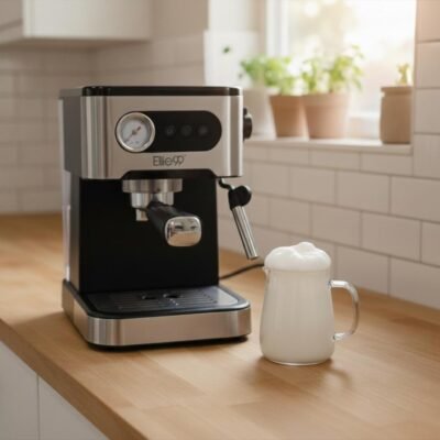 ماكينة القهوة إسبريسو – بقوة 20 بار و1350 واط تعمل بالقهوة المطحونة مع صانع رغوة مدمج – Elite99 ELT-3350