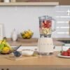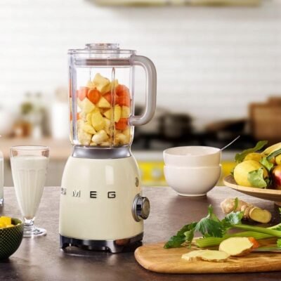 خلاط كهربائي بسعة 1.5 لتر وقوة 800 واط مع 4 سرعات و4 وظائف: سموثي، النبض (Pulse)، طحن الثلج، والتنظيف التلقائي – تصميم كلاسيكي من خمسينيات القرن الماضي باللون الكريمي – Smeg BLF03CREU