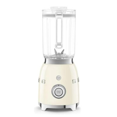 خلاط كهربائي بسعة 1.5 لتر وقوة 800 واط مع 4 سرعات و4 وظائف: سموثي، النبض (Pulse)، طحن الثلج، والتنظيف التلقائي – تصميم كلاسيكي من خمسينيات القرن الماضي باللون الكريمي – Smeg BLF03CREU