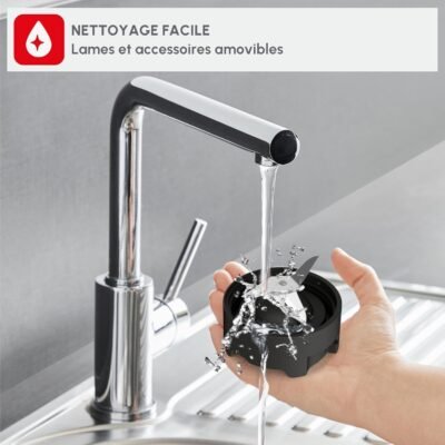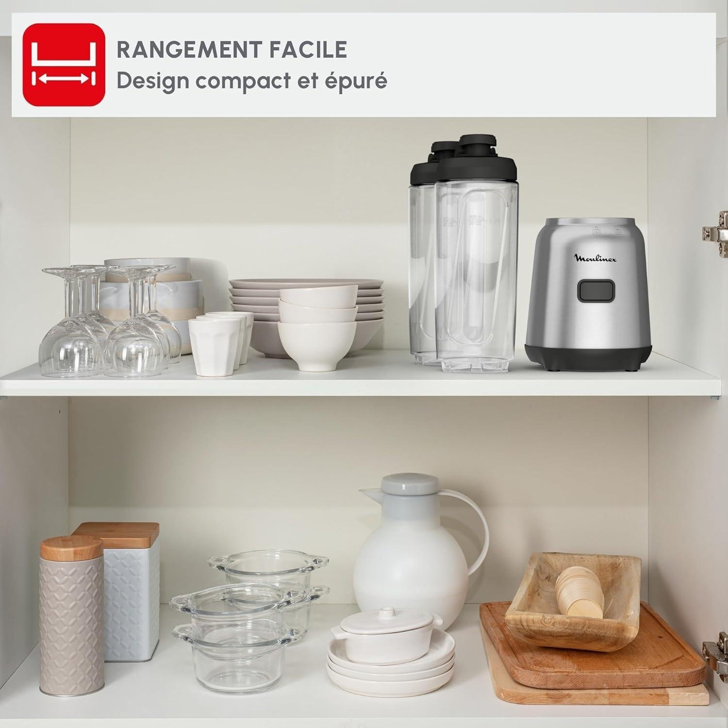 بفضل قوته، وزجاجاته المحمولة، وسهولة استخدامه الكبيرة، يُعد Moulinex Mix and Move LM15FD10 الجهاز المثالي للاستمتاع بالمشروبات المنزلية في أي وقت من اليوم. رفيق موثوق لحياة يومية أكثر صحة وراحة.