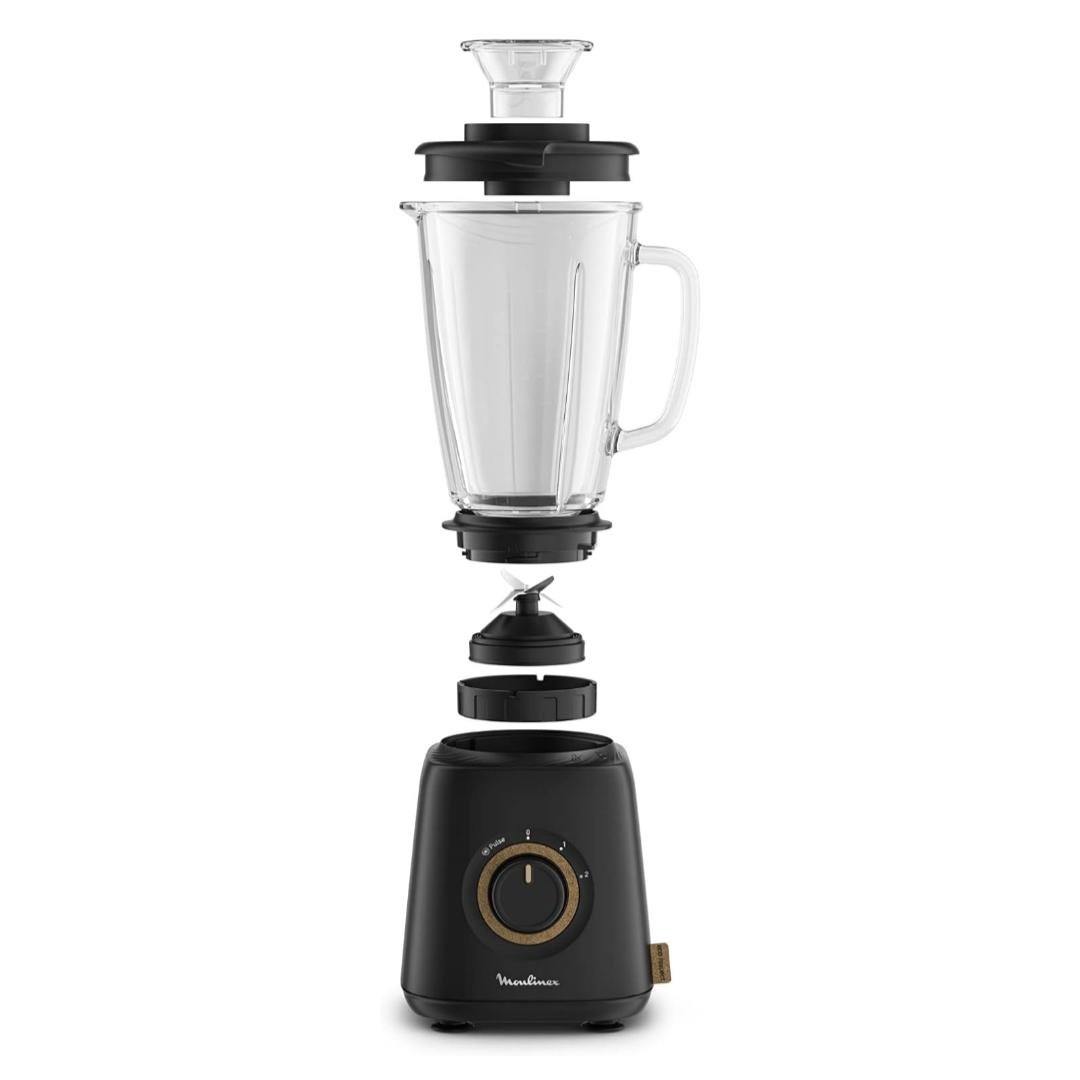 خلاط كهربائي 800 واط بسعة 1.75 لتر، سرعتان + توربو، 4 شفرات – وعاء زجاجي – Moulinex Eco Respect LM46EN10 – صنع في فرنسا