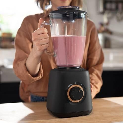 اكتشف خلاط Moulinex Eco Respect LM46EN10، خلاط قوي وصديق للبيئة، مزوّد بمحرك بقوة 800 واط، وعاء زجاجي مقاوم للحرارة بسعة 1.75 لتر، ومجموعة من الميزات العملية لتحضير السموثي، الشوربات، الصلصات والوصفات الساخنة أو الباردة بسهولة.