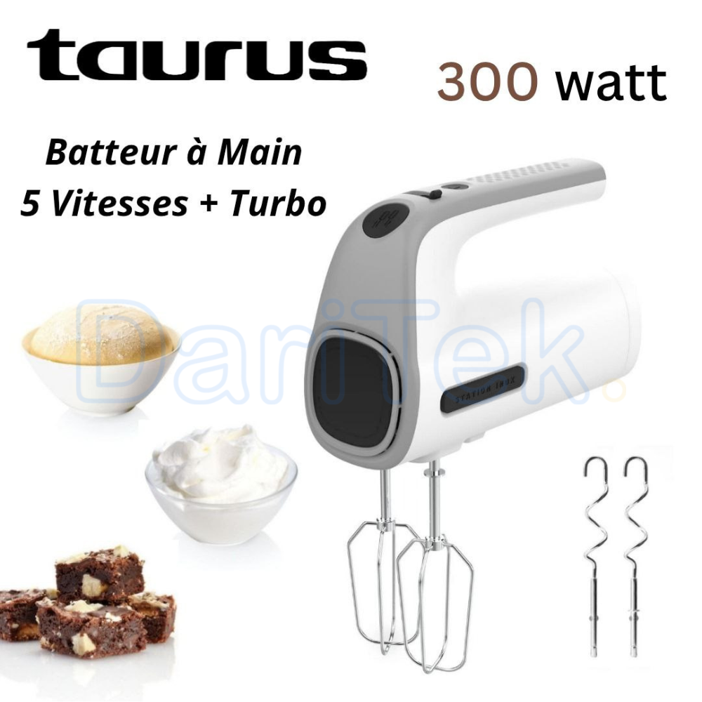 خلاط كهربائي يدوي 300 واط مع 5 سرعات وتوربو – Taurus Station Grey HM301