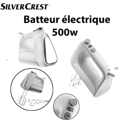 حضّر وصفاتك بكل سهولة مع مضرب SilverCrest الكهربائي بقدرة 500 واط! صُمّم لعشّاق الحلويات والطبخ، ويمنحك أداءً عمليًا لخفق المكونات وخلطها وعجنها دون مجهود.