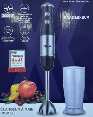 اختر الأداء والبساطة مع الخلاط اليدوي Tirexx. صُمّم لتلبية جميع احتياجاتك في الخلط، مزوّد بمحرك قوي بقوّة 1000 واط، مثاليّ لتحضير الشوربات والسّموذي والصّلصات وأكثر.