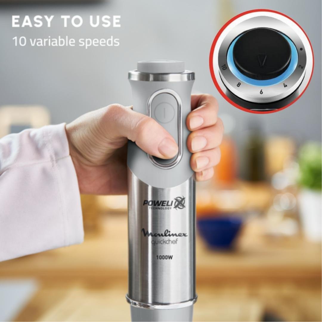 خلاط يدوي من 1000 واط 10 سرعات مع كأس قياس 800 مل بتقنية Powelix – Moulinex QuickChef DD65AD10