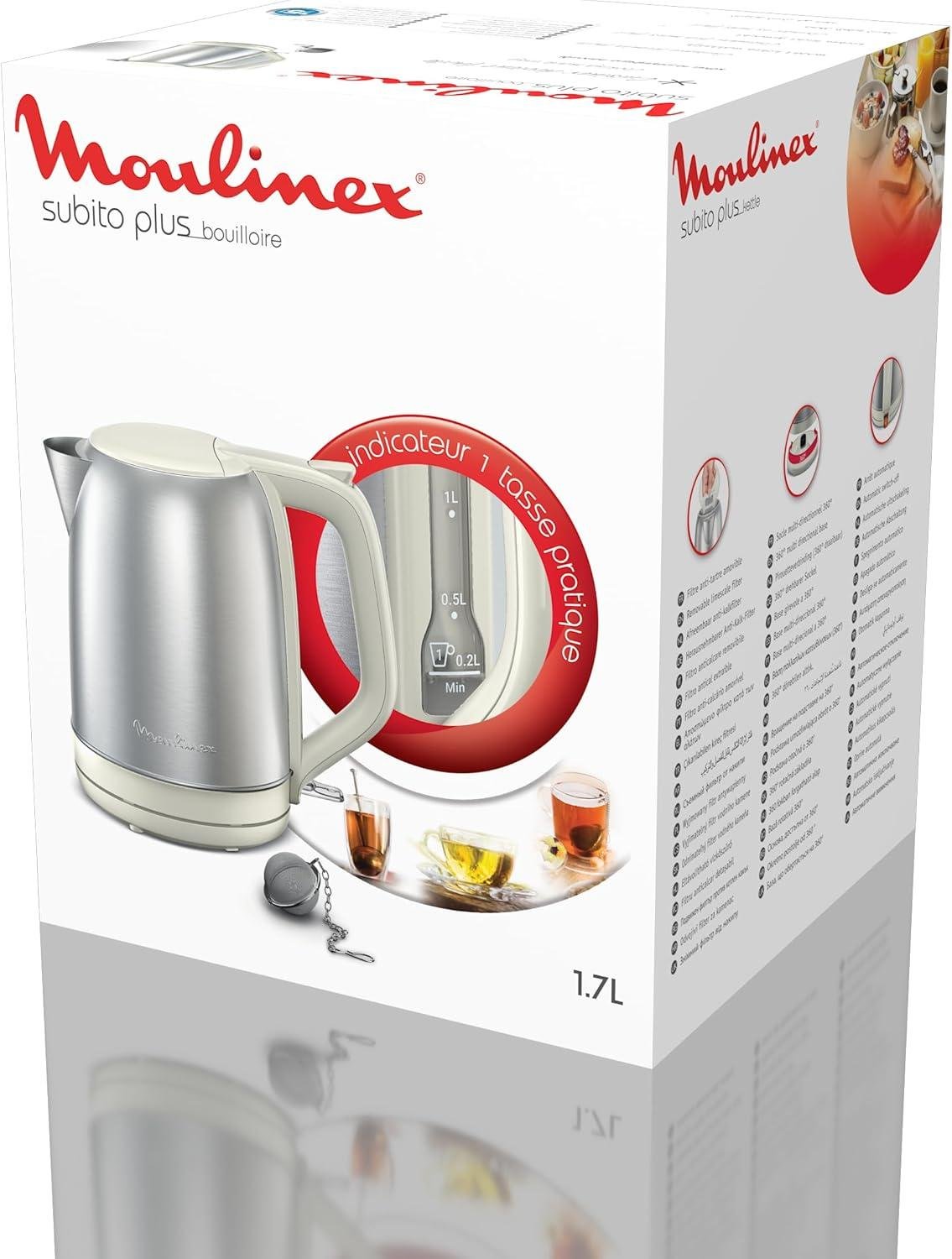 غلاية كهربائية بدون سلك 1.7 لتر 2000 واط من الفولاذ المقاوم للصدأ مع فلتر مضاد للترسبات قابل للإزالة – Moulinex Subito Plus BY5S1AE0