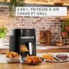 - وظيفتان في جهاز واحد (Air Fryer + Grill): شبكة/صفيحة شواء من الألمنيوم المصبوب لنتائج شواء ذهبية ومتجانسة.