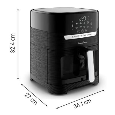 تُعد Moulinex Easy Fry & Grill Vision EZ506820 خيارًا ممتازًا لمن يريد طبخًا يوميًا أكثر صحة دون التنازل عن المذاق، لأنها تجمع بين القلي بالهواء والشوي في جهاز واحد. هي عملية وسريعة بفضل نافذة المراقبة الشفافة و8 برامج تلقائية مع شاشة لمس، ما يجعل التحكم في الطهي أسهل ونتائجك أكثر ثباتًا. كما أنها تطهو بسرعة وتستهلك طاقة أقل مقارنة بالفرن التقليدي وفق وصف الشركة، لذلك تناسب من يبحث عن السرعة والبساطة في جهاز واحد.
