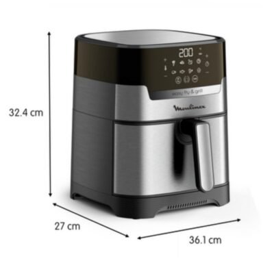 مقلاة هوائية 2 في 1 بدون زيت مع شواية 4.6 لتر 1400 واط 8 برامج رقمية من الفولاذ المقاوم للصدأ – Moulinex Easy Fry & Grill Digital