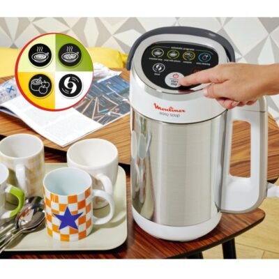 Découvrez le Moulinex EasySoup LM841B10, l’appareil idéal pour préparer facilement des soupes maison, veloutés, compotes, smoothies et bien plus encore. Grâce à sa fonction chauffante et à ses programmes automatiques, il garantit des résultats rapides, savoureux et parfaitement maîtrisés au quotidien.