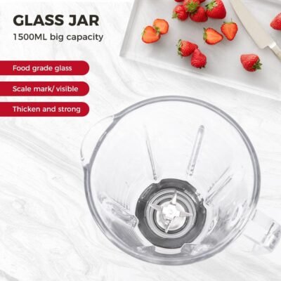 - Bocal en verre : de 1.5 L, idéal pour les portions familiales et un usage quotidien.