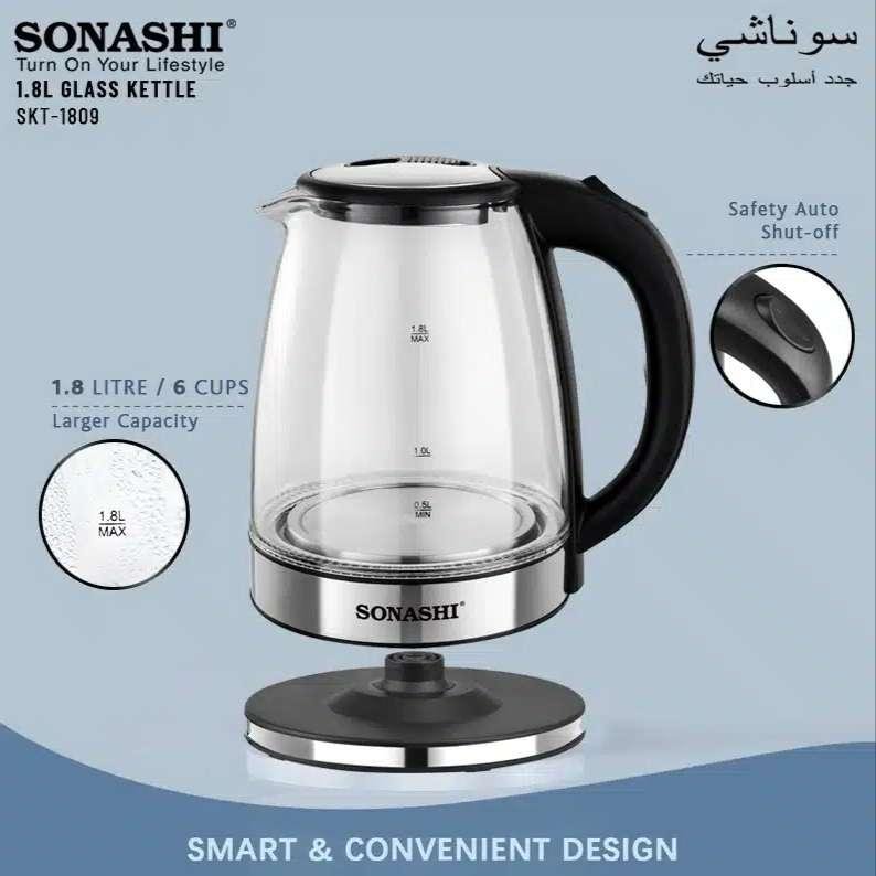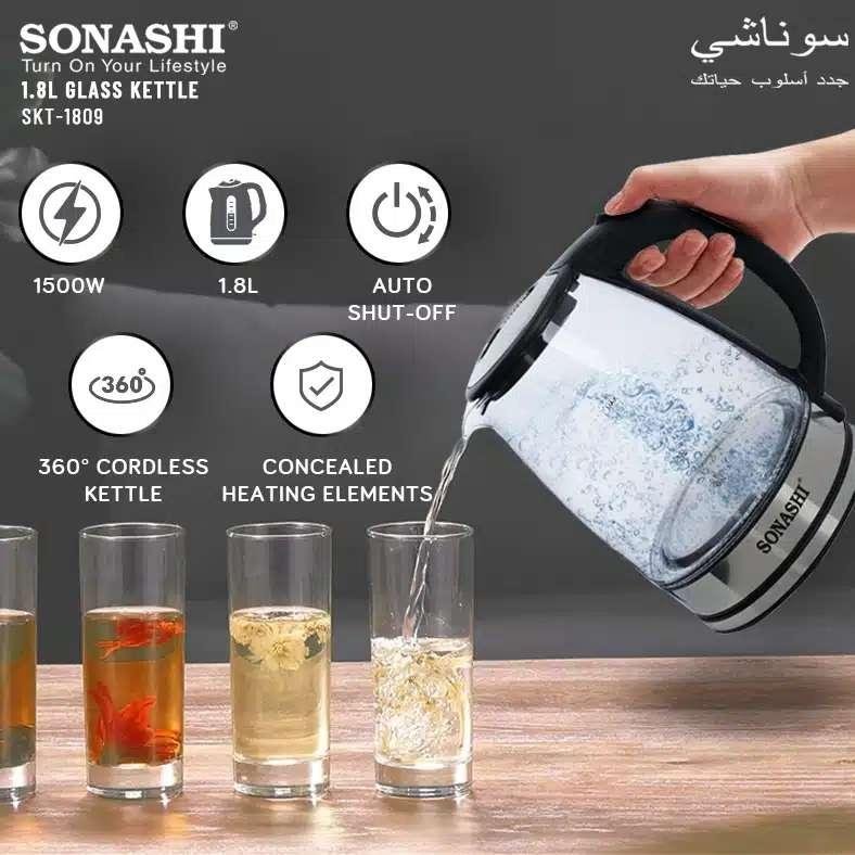 Bouilloire en verre 1.8L 1500W Sonashi SKT-1809