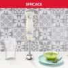 Donnez du style à votre cuisine et à votre plan de travail. Le mixeur plongeur Soleil, aux lignes simples et épurées, est un véritable rayon de soleil qui égayera même la plus élégante des cuisines. Doté de fonctionnalités pratiques pensées pour vous faciliter la cuisine au quotidien, le mixeur plongeur Moulinex met d’innombrables options à votre portée. Faites de la cuisine un jeu d’enfant en préparant de succulents dips, sauces, desserts, etc. Ce mixeur dispose d’une puissance de 450 W assurant efficacité et performance, il est également muni de lames ZELKROM ultra-résistantes pour des résultats parfaitement lisses. Utiliser un mixeur plongeur n’a jamais été aussi facile grâce à son bouton unique et simple permettant de le régler sur deux vitesses, y compris une fonction TURBO garantissant une puissance maximale et permettant de mixer les ingrédients les plus récalcitrants. Éléments amovibles compatibles lave-vaisselle pour un nettoyage sans effort, pied anti-éclaboussures pour éviter la saleté et les déversements, poignée ergonomique pour plus de confort et de facilité d’utilisation. Utilisez Moulinex Soleil pour une cuisine des plus élégantes !