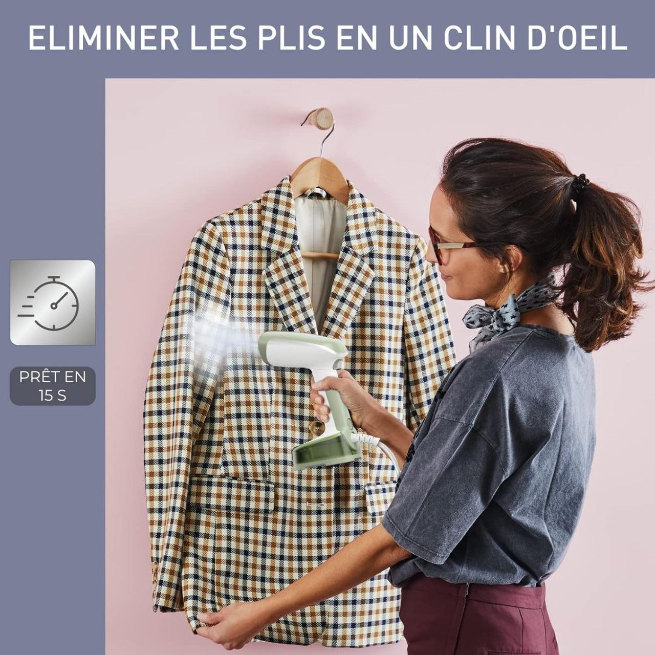 - Débit vapeur continu de 20 g/min : Élimine efficacement les plis tout en respectant les fibres, même les plus délicates.