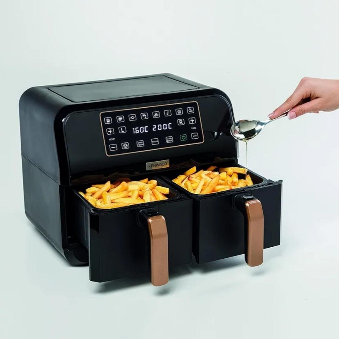 Découvrez la Kenwood HFP70, la friteuse à air chaud pensée pour les familles modernes ! Avec double panier de 4 litres chacun, elle vous permet de préparer deux plats différents en même temps, à des températures et durées indépendantes.
