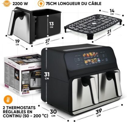 Friteuse Air Fryer sans huile 8L 2200W Double Tiroirs Avec Minuterie Proficook PC-FR 1287 H