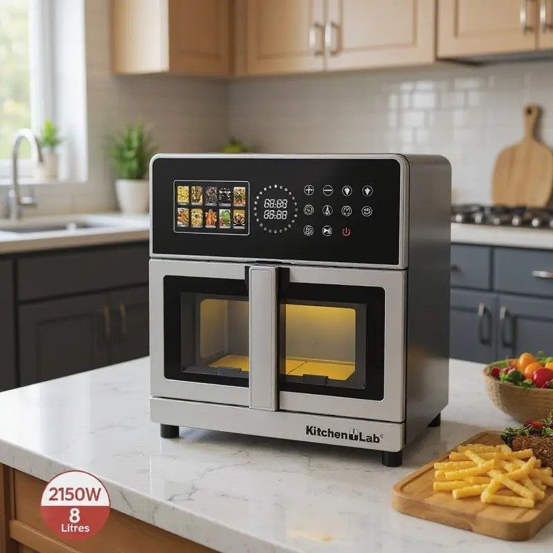 Découvrez l’AirFryer KitchenLab KL101DUW, puissant, grand et polyvalent ! Avec sa capacité XL de 8L et ses double résistances, cuisinez rapidement et uniformément vos plats préférés tout en conservant saveur et croustillant.