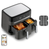 - Double friteuse à air XXL qui permet de cuire deux ingrédients différents en même temps, pour un repas complet préparé dans un seul et même appareil