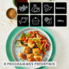- 8 programmes prédéfinis : frites, poulet, légumes, poisson, desserts, déshydratation et contrôle manuel de la température (40 à 200 °C)