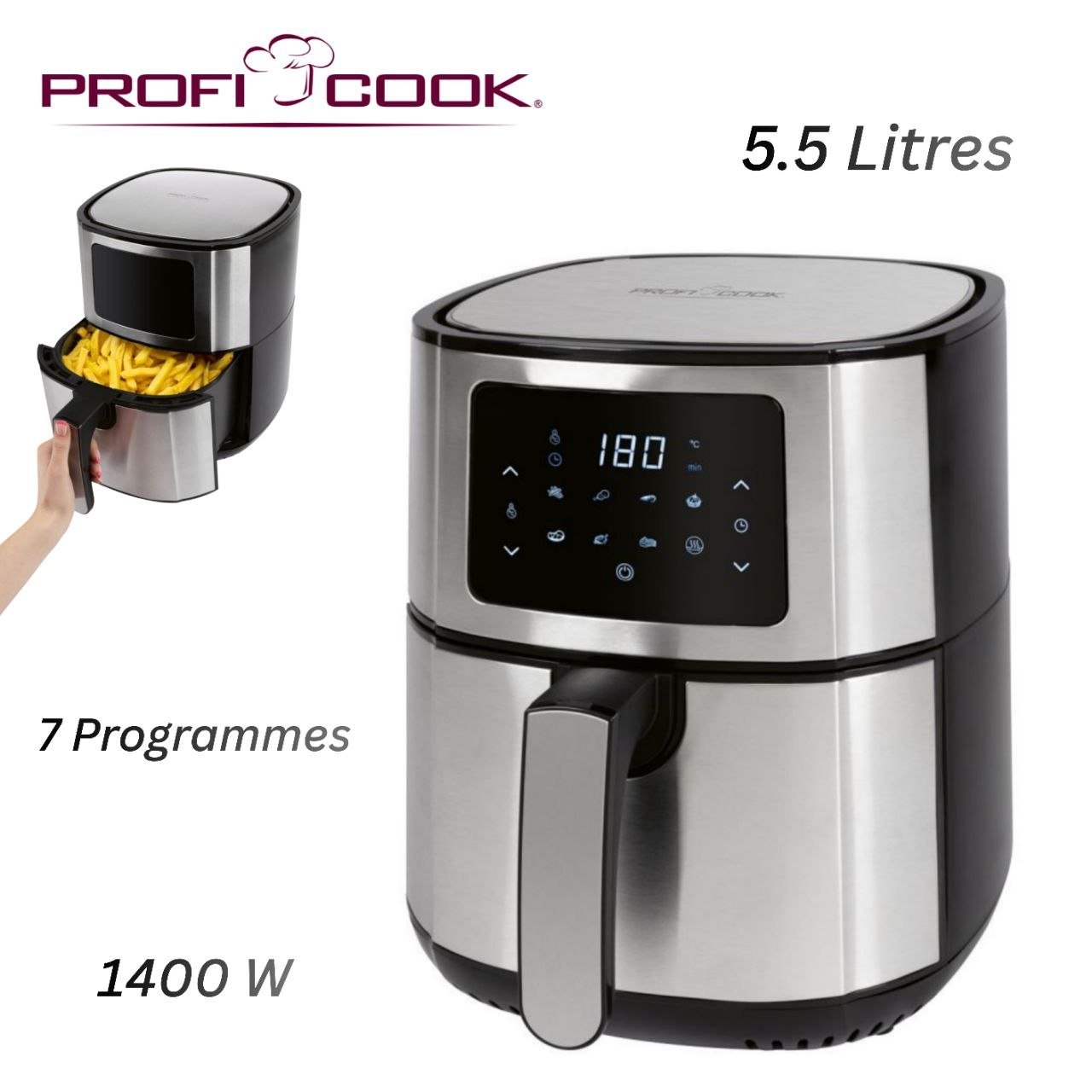 Friteuse Airfryer Inox 5.5L 1400W à air Écran Tactile – 7 Programmes – PC-FR 1239 H